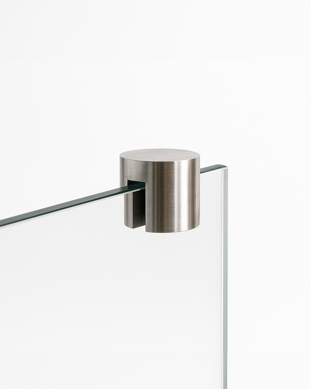 Para el apoyo de las bases sobre el piso, ofrecemos dos opciones: felpas protectoras, que evitan dañar el vidrio, o planchuelas de aluminio adheridas con pegamento UV, ideales para lograr un acabado más elegante y refinado.